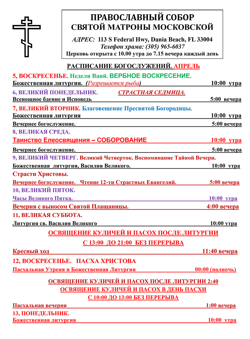 8 марта, во второе воскресенье Великого поста, в соборе святой Матроны в Майами было совершено Таинство Елеосвящения или Соборование.Подробнее…