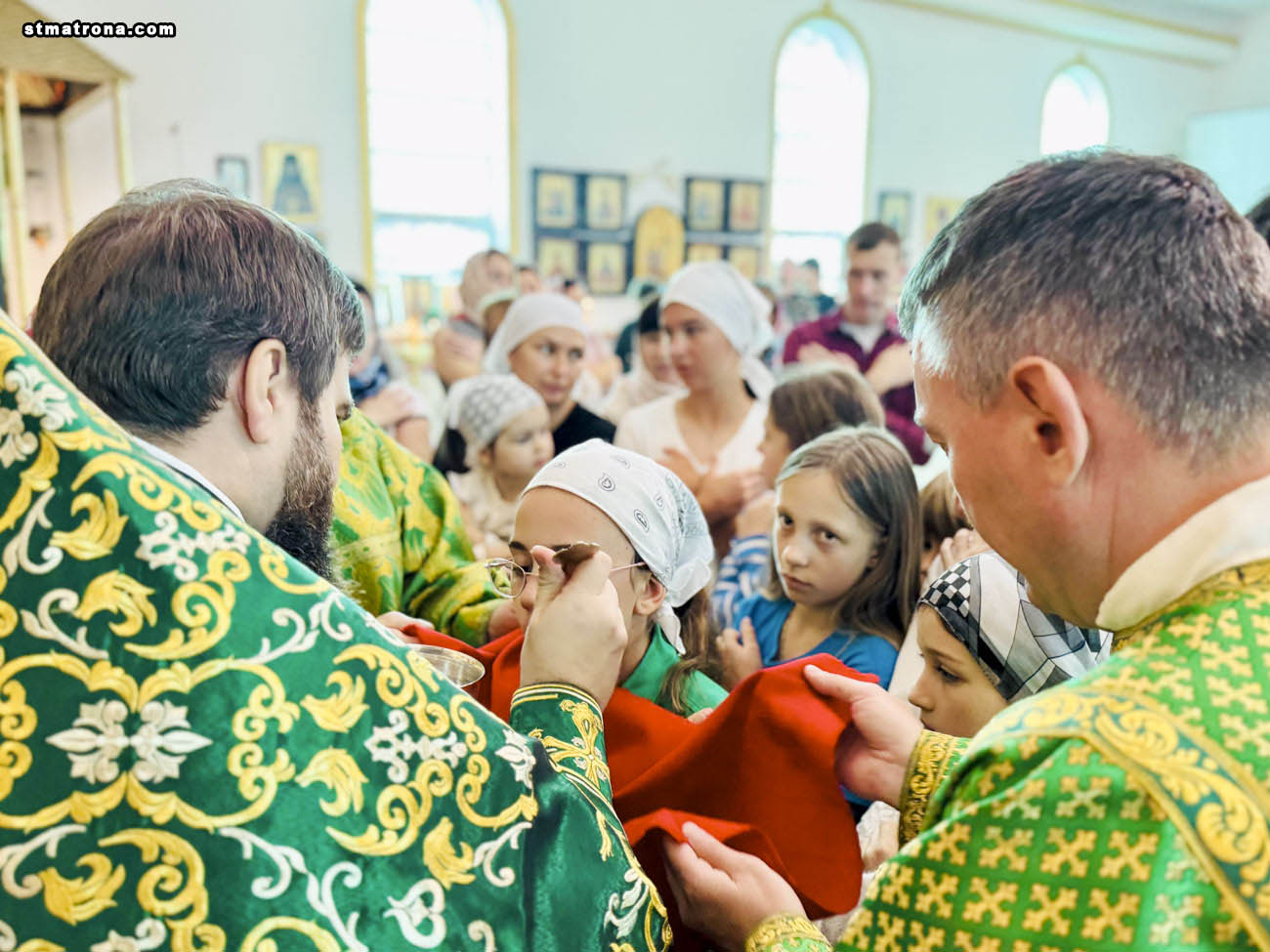 За богослужением молилось множество прихожан, большинство из которых приступило к принятию Святых Даров, при этом причастие проводилось на три чаши.
