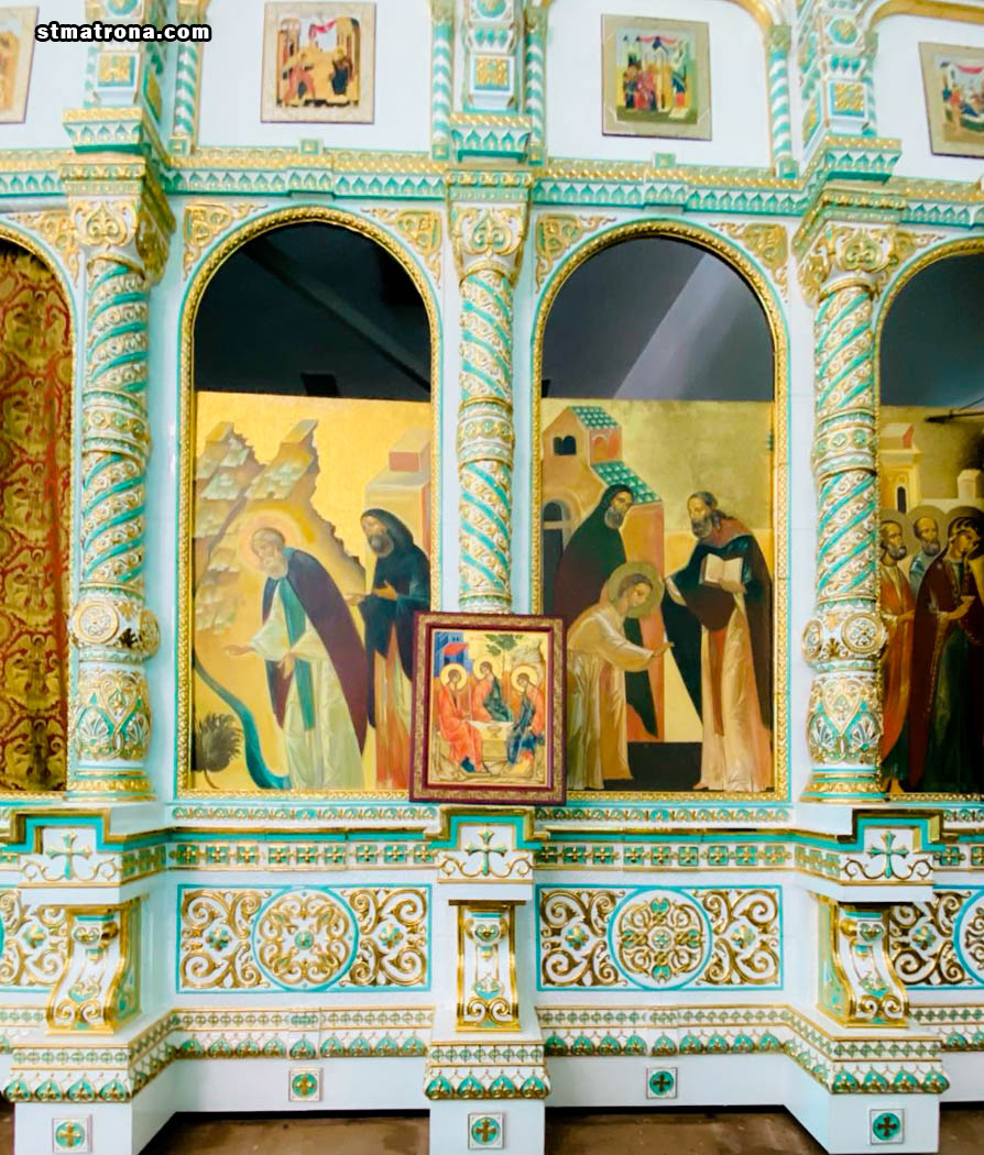 Икону Пресвятой Троицы собору святой Матроны в Майами подарила семья Андрея и Валентины. В 2020 году, во время посещения нашего храма, Валентина хотела помолится перед иконой Троицы. В нашем храме не было этого образа, поэтому она пообещала подарить его приходу. Икону Пресвятой Троицы написали в мастерских в Троице-Сергиевой Лавры, там же в монастыре ее и освятили. По ряду причин святыню смогли доставить только через несколько лет. В будущем для образа будет изготовлен киот.