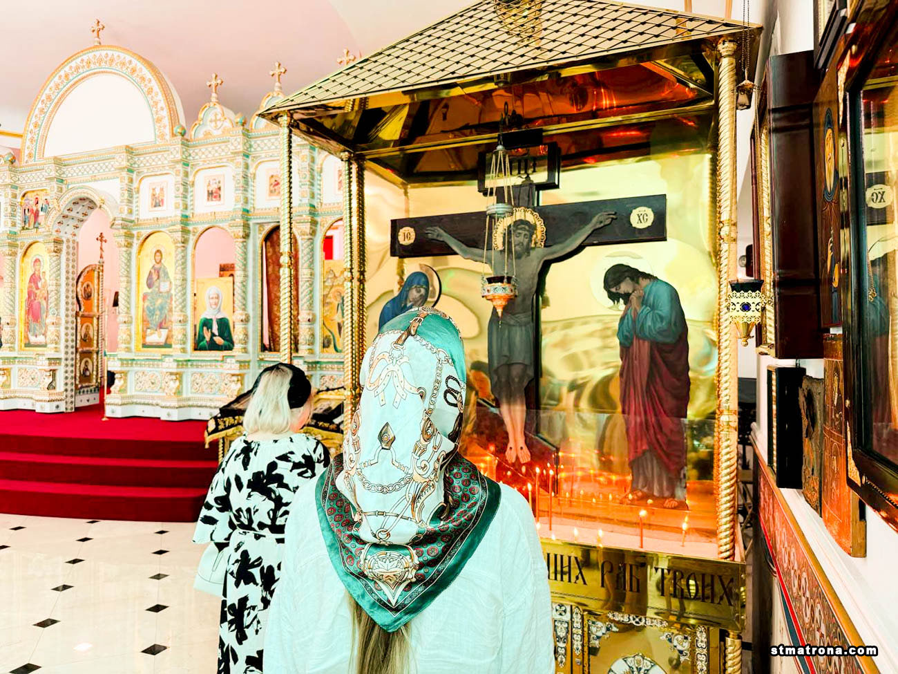 В конце богослужения был отслужен молебен Пресвятой Богородице, после которого отец Александр поздравил верующих с праздником. Настоятель поблагодарил всех, кто участвовал в украшении храма и праздничном богослужении, и подчеркнул, что покров Божией Матери простирается над каждым, кто с верой и любовью взывает к Ней.