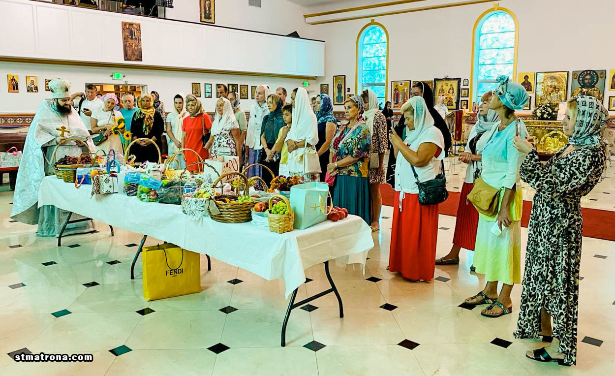В конце богослужения архимандрит Александр совершил традиционное для этого праздника освящение винограда и других плодов. Благословение плодов нового урожая является благодарностью Богу за Его благодеяния роду человеческому.