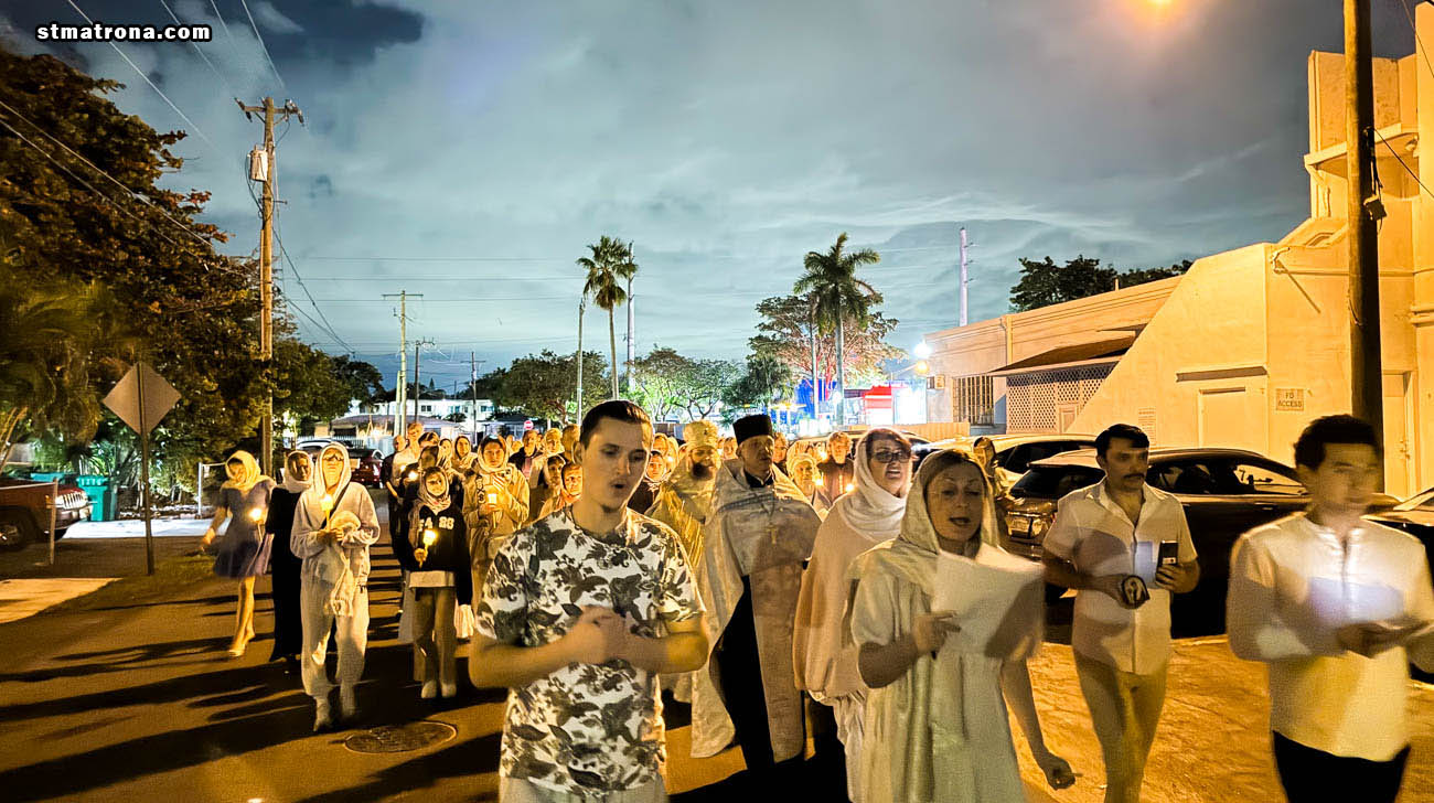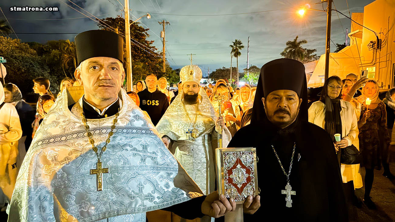 Главные богослужения праздника Рождества Христова были совершены в ночь с 6 на 7 января и состояли из Великого повечерия, Литии, Утрени, Крестного хода с мощами небесной покровительницы собора – святой Матроны (традиция Майамского собора) и Божественной литургии. На шествии к отцам Александру и Максиму присоединился настоятель испанской миссии в честь святого Себастьяна в Майами иеромонах Педро Медина Базан.